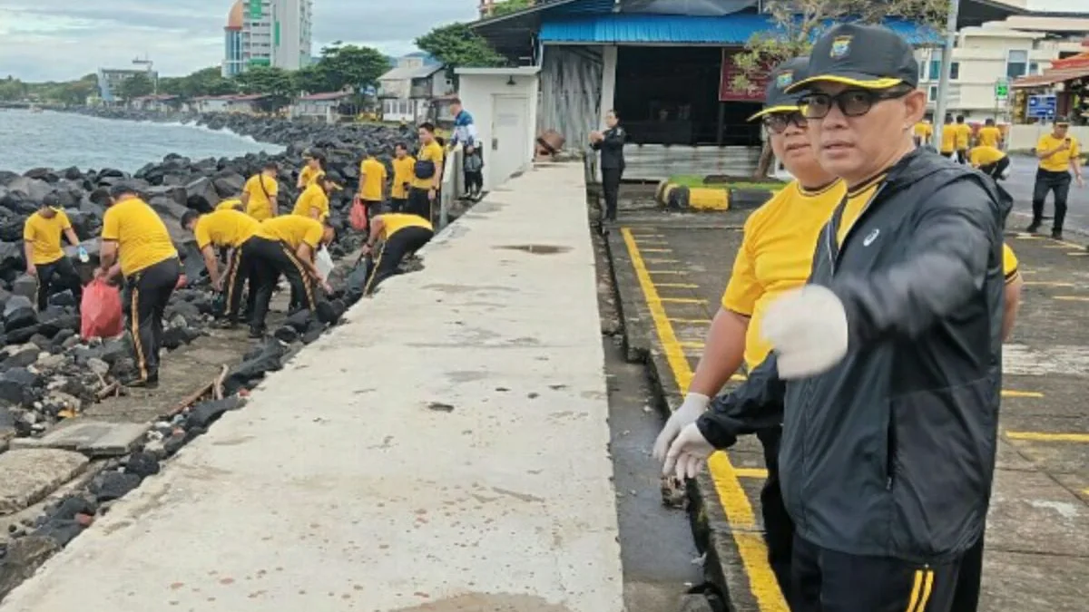SULUTVIRAL.INFO – Polda Sulawesi Utara mengerahkan sekitar 1.000 personel untuk membersihkan sampah di kawasan Boulevard Manado, Jumat pagi, 6 Februari 2026. Sejak pukul 06.00 WITA, personel kepolisian menyisir pesisir pantai hingga kawasan Megamas, yang menjadi pusat aktivitas publik dan pariwisata.